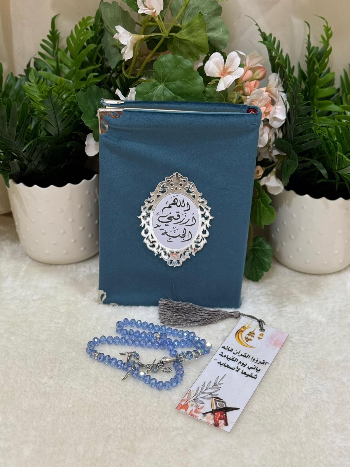 بوكس يتكون من مصحف مغلف ومسباح وفاصل قرأن الون تركوازي