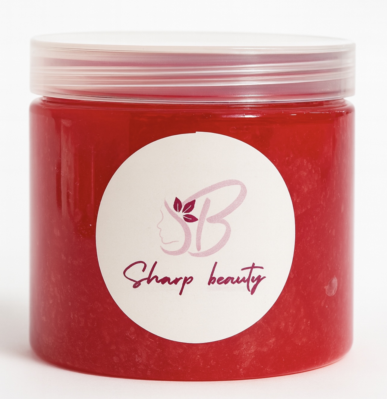 عبارة عن زيوت وشموع وزبدات وسكر وأحماض فواكة وبودرة فاكهة التنينن تعطي تقشير لطيف وترطيب عميق للبشرة مع توريد طبيعي ريحتها مميزة ودلوعية