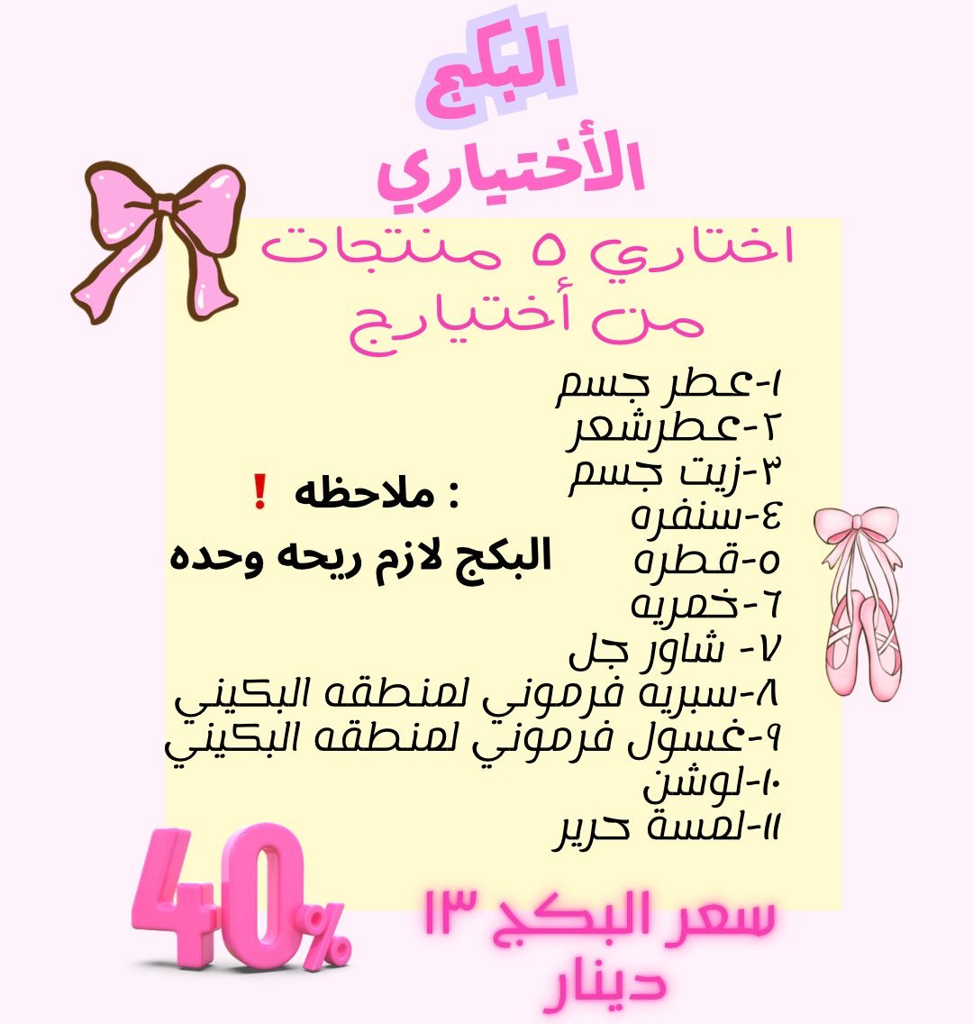 تأخذين مجموعه تييج معاها خمريه هديه🩰تأخذين مجموعتين ولا اكثر تختارين اي منتج تبينه🎀
